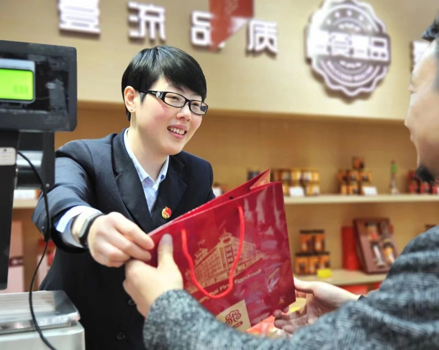 我是郁非,在光明食品集团从事门店销售工作三十年了。目前,我在第一食品南京东路店担任专柜柜长。一方三尺柜台,玻璃擦得透亮,反射的不只是灯光,还有这座城市的晨昏流转。1993年我刚站上来时,师傅就指着琳琅满目的点心说:“阿拉这里,卖的不是吃食,是上海的温度。”那时年轻,我还不懂其中的深意。