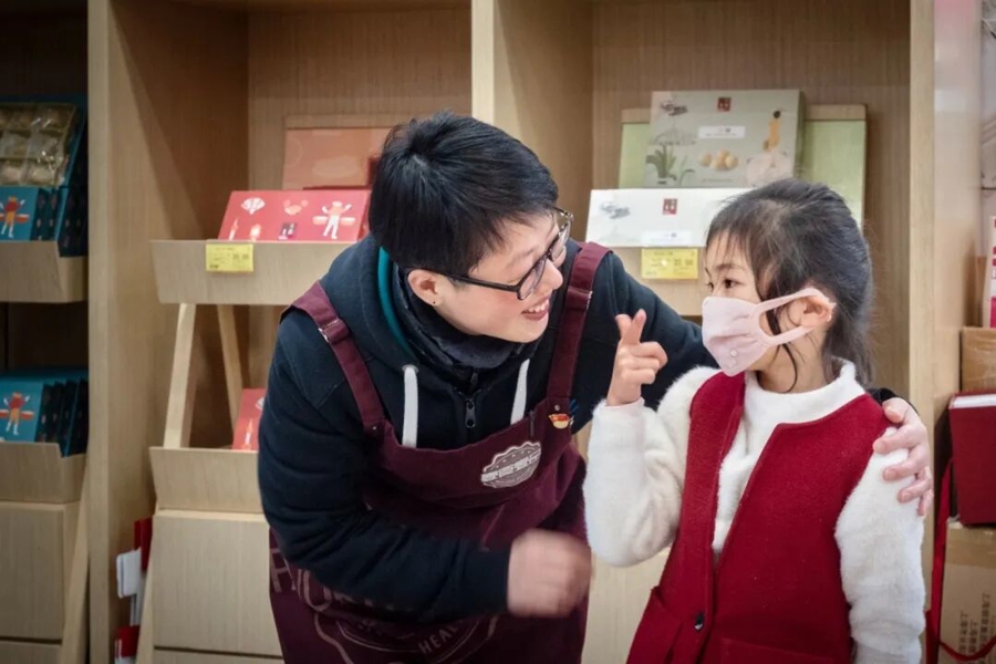时代推着我们向前跑,渐渐地,我的“柜台”变大了,也变“吵”了。它被搬进了小小的手机屏幕,我学着在直播间里,对着天南海北的顾客说一声“侬好呀”,把256层起酥的工艺讲究娓娓道来。店里飘出的也不只是黄油香:潮玩盲盒在食品货架旁被惊喜拆封,传统点心与密室逃脱、创意市集奇妙地共生在一起。曾经安静的柜台,如今交织着老上海的腔调与新世代的潮音。