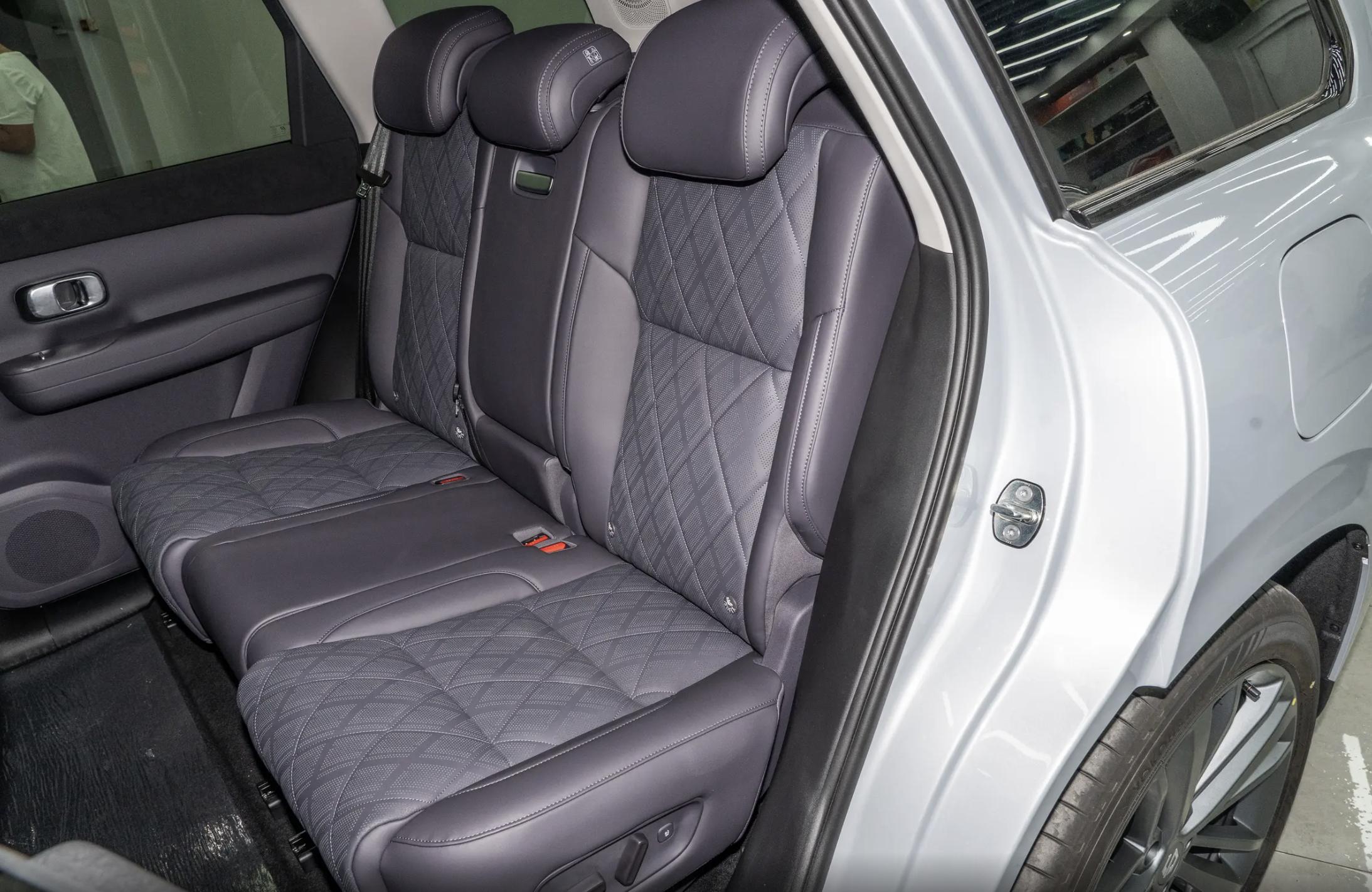 然后我们再来看一下这款车辆在舒适性配置方面的表现:如果是大家想要进入到车内,可以通过遥控钥匙,遥控钥匙的类型比较的丰富,包括可穿戴钥匙,手机蓝牙钥匙,NFC钥匙,这样大家就可以轻松的进入到车内了,而且主驾驶位置还支持无钥匙,进入车内还可以进行无钥匙启动,所以进入车辆或者是开启车辆都变得方便了许多。我们在舒适性方面主要的追求就是希望这款车辆更加的便捷,不会耽误我们的用车时间,车辆内部还带有内置的行车记录仪,就能够记录下大家在行驶过程中的路况,在出现意外或者是纠纷的时候,行车记录仪上面的数据就可以作为我们后续的参考,而且还带有一个可以进行手机无线充电的面板,手机无线充电的最大功率是50W,将手机放置在上面能够快速且稳定的充电,而且手机也不会出现发热发烫的问题。在舒适性方面主要的体现形式就是它的座椅了,座椅的布局是2+3的形式,而且在主驾驶位置,副驾驶位置和第二排的座椅可以进行电动的调节,主驾驶位置在进行整体调节的时候,包括前后移动能够达到292mm,靠背角度的最大仰角能够达到179度,高低调节能够达到49mm,局部是可以进行头枕部位和腰部的调节,副驾驶位置是可以进行前后移动和靠背角度的调节,局部是可以进行头枕部位的调节。第二排的座椅也会非常的方便,因为它可以进行前后移动和靠背角度的调节,也是可以满足我们的舒适性乘坐体验需求的。而且前排的座椅功能性非常的丰富,可以进行加热,通风,按摩和记忆的功能,当然这个记忆功能只是体现在主驾驶位置上,这样当大家无论是非常寒冷或者是炎热的季节进入到车内,坐在座椅上都能够享受到座椅的干燥和舒适感,冬天的时候可以感受到温热,夏天的时候能够感受到凉爽,这才是一款优质车辆座椅所能够给予我们的舒适感。